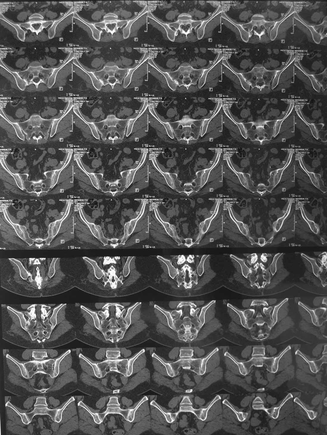 В 2009г установлен диагноз - сакроилеит справа. На представленных КТ имеется гипертрофия заднего отдела правой подвздошной кости с образованием контакта с задней поверхностью крестца. В январе 2011 года выполнена попытка удаления гипертрофированного участка подвздошной кости. удаленные участки кости исследованы гистологически - губчатая кость с элементами гиалинового хряща. После операции положительного эффекта не получено. На контрольной КТ от 04.2011 обнаружено что, желаемого результата операции не получено(интересующий участок удален частично), при этом имеется расслоение заднего отдела правой подвздошной кости. Сейчас клиника таже самая, признаков воспаления внешне нет, по анализам тоже нет, туберкулеза нет и бруцеллеза тоже нет. Вопросы: 1. правильно ли нами оценена причина болей? 2. причина расслоения кости (интраоперационная исключена)? 3. что делать? С уважением А.А.Гринь.