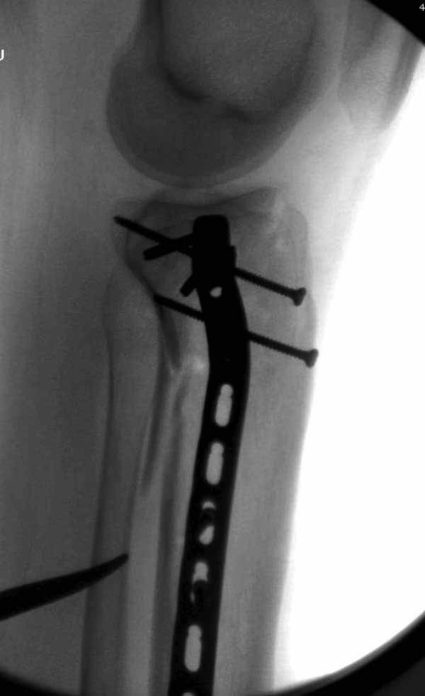 Для изолированных переломов медиального тибиал плато, фиксацию можно провести “медиальной пластиной”. Некоторые компании, например Smith & Nephew делают медиальные и медиально-задние пластины, но они мягкие, и легко можно создать нужный контур. Жесткость создается за счет фиксации жесткими пластинами, например экстра артикулярной пластиной для дистального плеча от Synthes. Медиальный доступ тоже не из легких, надо работать между pes and medial gastroc.