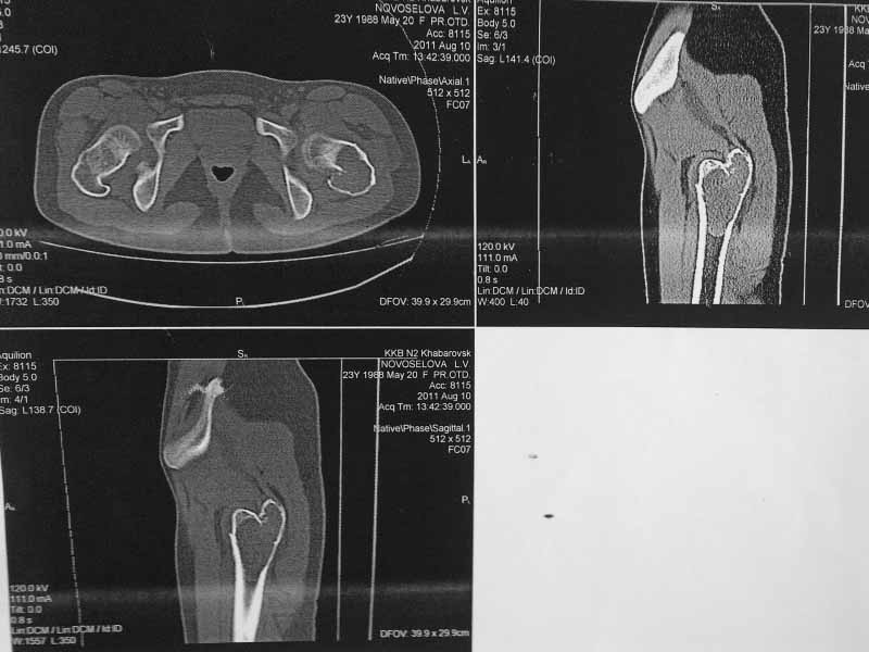 Упала 2 дня назад доставлена к нам вот с такой картиной. Из анамнеза - боли беспокоят в течении полугода, постоянные. Никуда не обращалась. Уважаемое сообщество подскажите - ОБК?, Фиброзная дисплазия?, Киста?. Тактика ведения?. Девушка молодая!!!