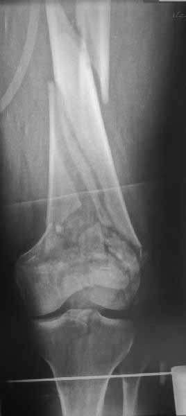 Ответ на эту часть Вашего поста – вложенный файл. Больная оперирована неделю назад по поводу открытого перелома дистального эпиметафиза бедренной кости. После операции она идёт в рентгенкабинет для выполнения послеоперационной контрольной рентгенографии, представленной на слайдах 10 и 11. Узнав, почему её фотографируют, просила передать Вам, Антон, привет.