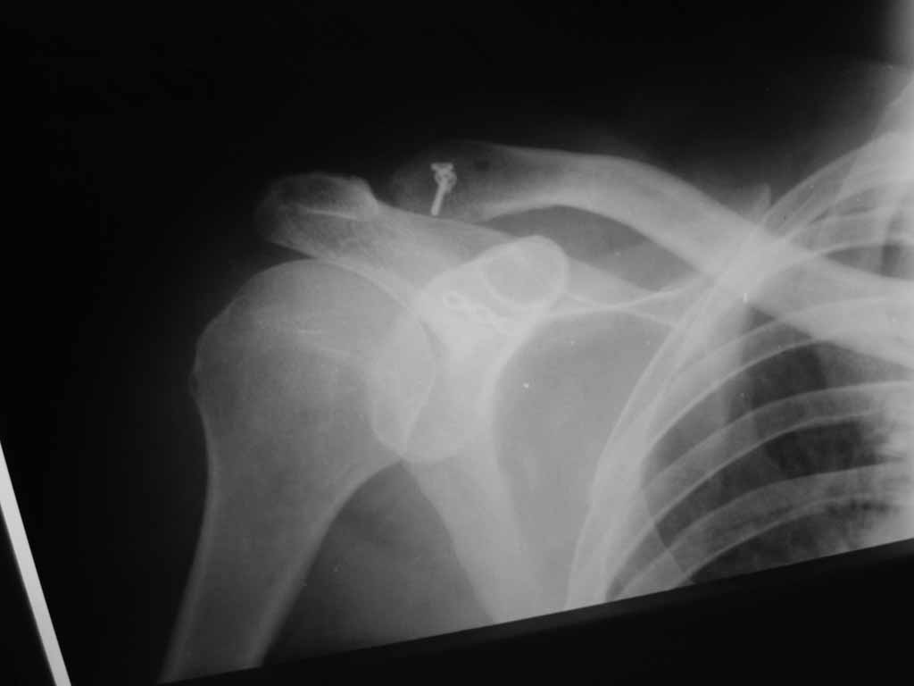Коллеги, кто-нибудь в практике сталкивался с последствиями фиксации АКС винтом через акромион в акромиальный конец ключицы?