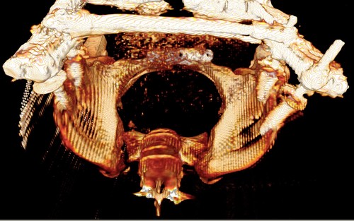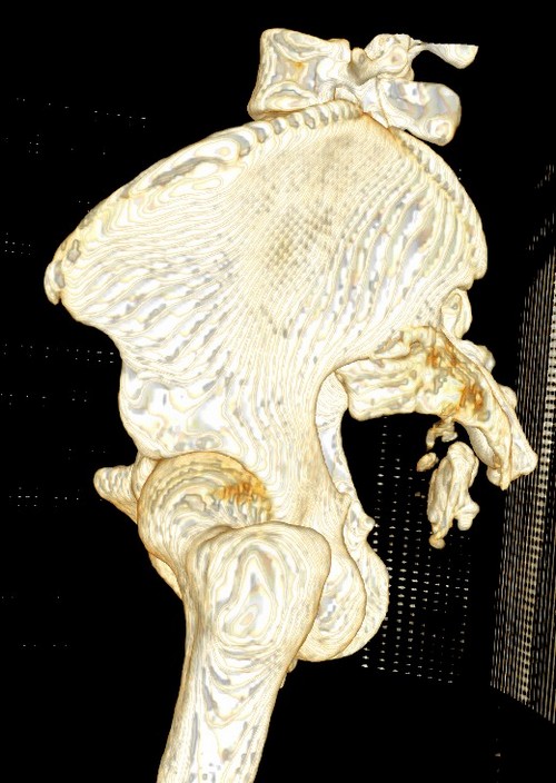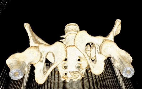Девочка 14 лет. Кататравма (падение с высоты 4-5 этажа). Вертикально нестабильный перелом таза со смещением, разрывом лонного и левого подвздошно-крестцового сочленения, перелом крестца, открытый перелом костей голени. Ребёнок оперирован на 10-е сутки после травмы - выполнили максимально возможную репозицию на ортопедическом столе, синтез лонного сочленения реконструктивной пластиной (из имеющихся пластин - на 7 дыр - самая длинная, получилось только по 2 шурупа с каждой стороны, поэтому пришлось подстраховаться проволокой), АВФ. Задний комплекс не фиксировали ввиду отсутствия канюлированных (да и неканюлированных)шурупов должной длинны.В настоящий момент перед нами стоит вопросов:1. Обязательно ли фиксировать подвздошно-крестцовое сочленение, либо фиксации АВФ будет достаточно? Аппарат стоит достаточно стабильно, девочка при перемещениях в пределах постельного режима болевых ощущений не испытывает.2. Что делать с отломком крестца, который довольно значительно смещён кпереди? В настоящий момент никаких проблем с дефекацией у больной нет, хотя, глядя на КТ, создаётся впечатление, что отломок прямо-таки лежит на прямой кишке. Репонировать-фиксировать? Просто удалить? Вообще не трогать? Не создаст ли он в дальнейшем проблем во время родов?Хотелось бы знать мнение уважаемых коллег.Заранее спасибо.