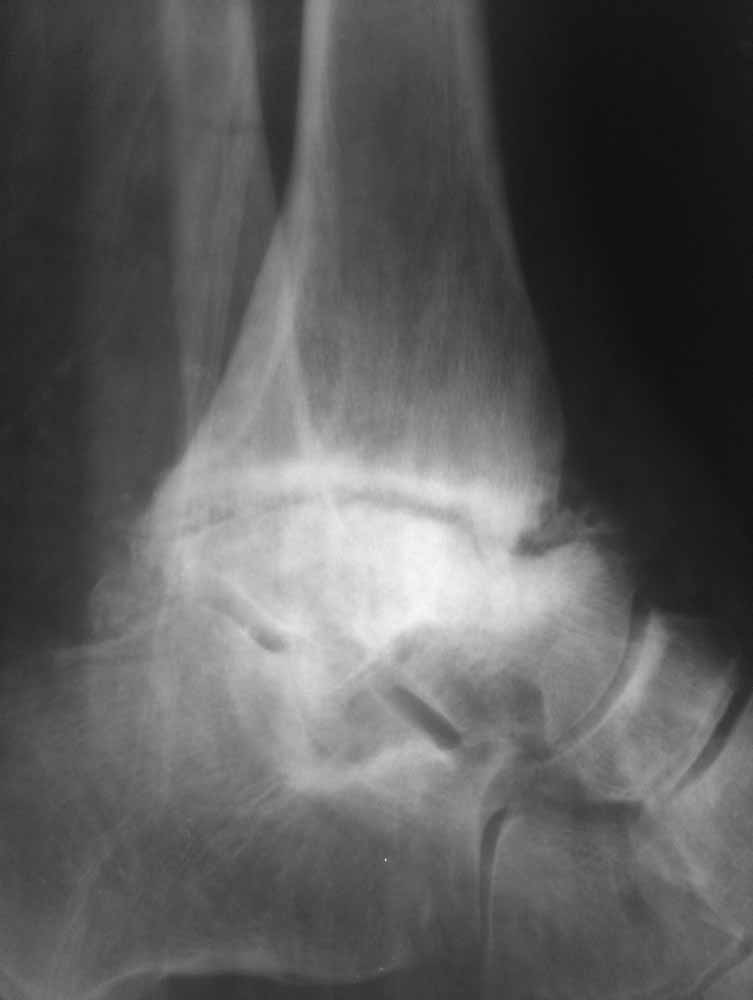 Прогрессивное разрушение скелета и характерную деформацию можно увидеть при нейропатической артропатии или Charcot arthropathy.