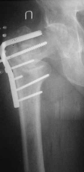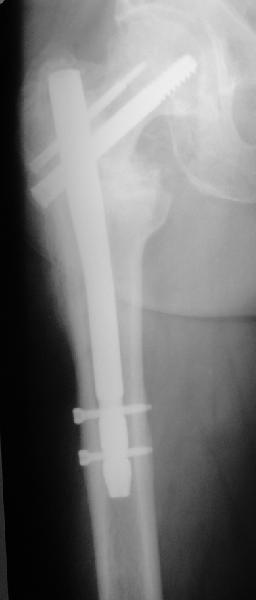 Важно достигнуть хорошую ротационную стабильность фиксации. Угловая V-образная пластинка стабильнее , а еще лучше два винта. Проксимальный бедренный гвоздь с двумя винтами - PFN, Syntes или любой похожий по моим понятиям лучший вариант.