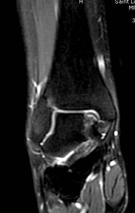 на рентгенограммах не всегда заметны склерозные участки, и поэтому в большинстве диагноз устанавливается поздно. Приход КТ и МРТ улучшил диагностику, и в срезах внутри кисты можно увидеть жидкость, но это не означает проявление симптоматологии. Симптомы проявляются с момента образования внутрисуставных краевых фрагментаций!