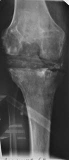 Уважаемые коллеги! Пациент мужчина 62 года, эндопротезирование коленного сустава в сентябре 2011 в одном из соседних учреждений. Множественные операции по восстановлению связок в анамнезе. Под наше наблюдение попал спустя 3 месяца с клиникой глубокой перипротезной инфекции. Гнойный свищ, MRSA в посеве. Выполнено удаление протеза, некрэктомия, установка цементного спейсера. Заживление первичное, а\б терапия по посевам, в течении 2 месяцев положительная динамика, нормализация лабораторных показателей. В последующем усиление болей, отек, разрушение спейсера по рентегнограммам. Взят в операционную для повторной некрэктомии, удаления спейсера. Во время операции выявлено- отсутствие явного гнойного содержимого, ткани более жизнеспособные, чем во время первого удаления, отсутствие значительного прогрессирования костных дефектов. Решено от одномоментного артродеза воздержаться, конечность стабилизирована дистракционным аппаратом. В интраоперациооных посевах St.aureus. В настоящее время две недели после операции, встает вопрос о возможностях далнейшего лечения. Ревизонное колено? Еще раз после спейсера или сразу? Или артродез?
