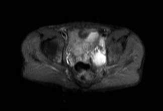the pubic ramus there appears to be an enhancing tract which