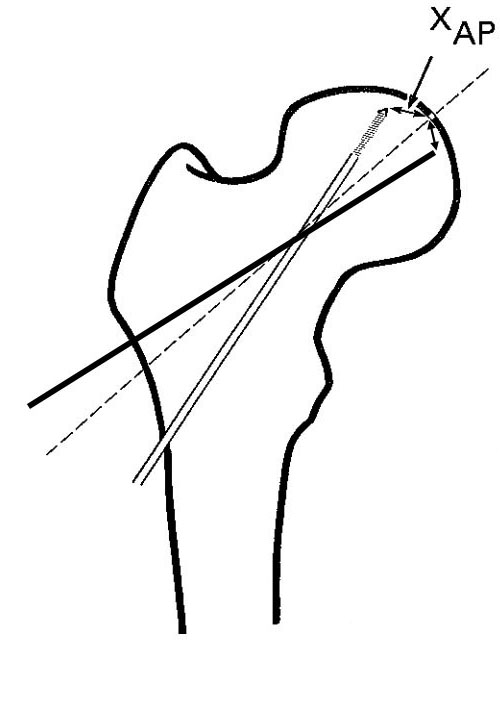 расстояние от кончика винта до верхушки головки бедренной кости (Tip-apex Distance)должно быть менее 25 мм