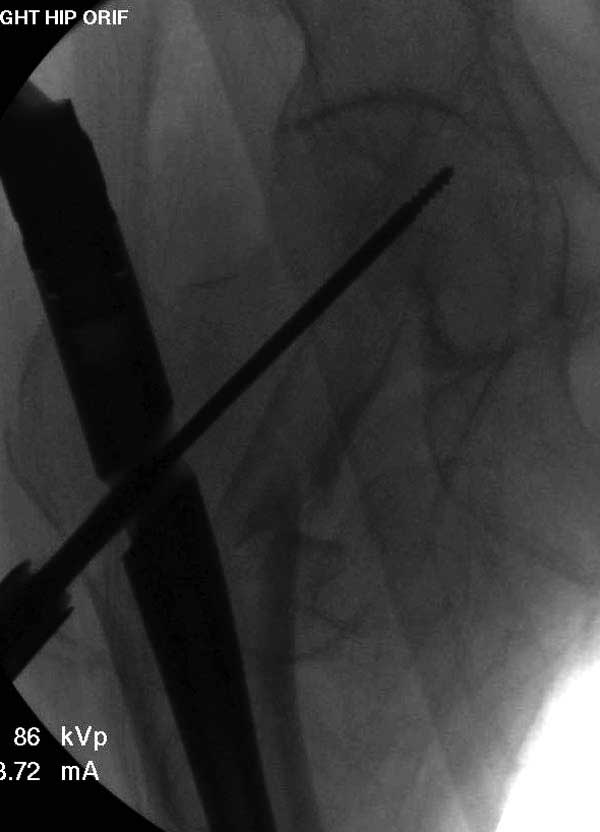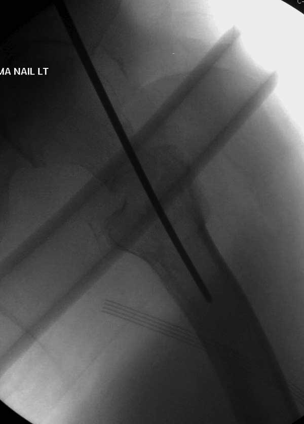 Да, согласен, в такой же репозиции Гамма был бы таким же несостоятельным фиксатором. Проблема в репозиции медиального кортекса, который судя по снимку на месте и опора есть, а на самом деле не так. Как можно его проконтролировать? Дигитально, указательным пальцем пробраться через рану и пощупать? Иногда можно так репонировать перелом шурупом DHS - щупать пальцем язык перелома, который часто около малого вертела и можно до него достать пальцем и при малом разрезе, и поворачивая шуруп еще закручивая его на рукоятке репонировать перелом когда шуруп начнет брать кость. Если остеопороз не сильный и шуруп берет сразу, можно поставить антиротационный шуруп при репонированном положении перелома.