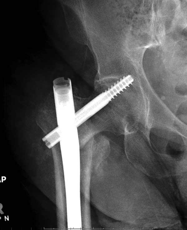 Еще один технический момент, приводящий к вырезыванию DHS при вертельных переломах: недостаточно "глубокая" посадка винта.