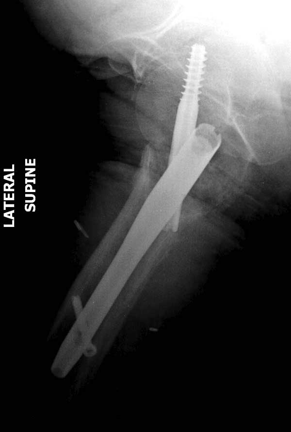 Что касается данного перелома, то по-моему DHS или гамма - принципиальной разницы здесь конкретно нет - медиальная опора сохранена, при правильном исполнении можно ногу нагружать. Технически здесь выполнено на 3+, но если так же винт гаммы поставить - лучше не было бы.