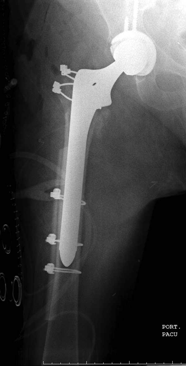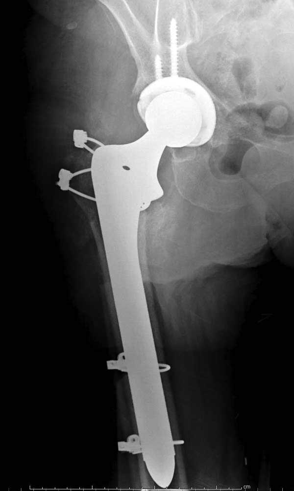 Если хирурги не устали от своих “творчеств”, тогда можно ре-оперировать с calcar replacement stem, и собрать остаток ягодичных мышц. Глубина и отстутствие артроза позволяет применить любой, биполярный или тотальный, хотя принять решение можно после ревизии ацетабулума.