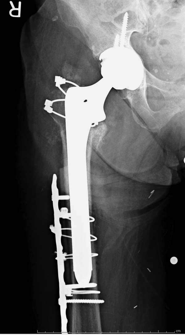 Обычно после чрезвертельных переломов, за исключением молодых, у пожилых остается нестабильность при движении. Часто падают и после 3х мес. в результате падения обнаружен перипротезный перелом (22-23), который зафиксирован Синтез пластиной.