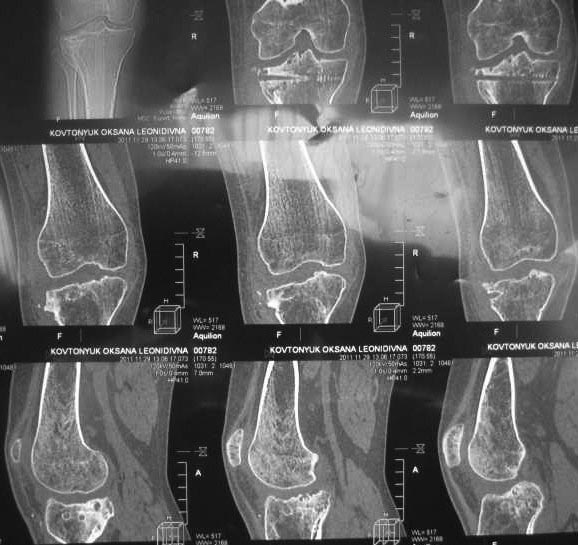 Жалобы на деформацию и нарушение функции правого коленного сустава .Внешний вид –вальгусная деформация на уровне коленного сустава .Коленный сустав стабильный, надколенник при сгибании в правильном положении.