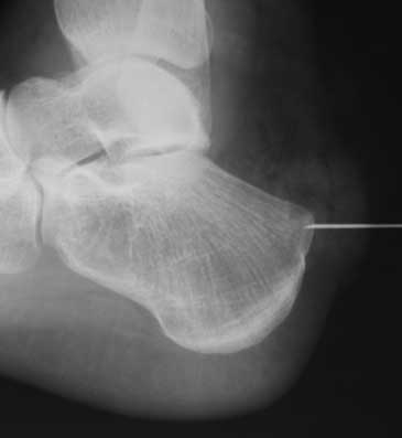Поддерживаю доктора, Бережного Сергея! Нужно выполнить рентгенографию, иногда даже МРТ для оценки состояния тканей данной области! На последнем съезде АСТАОР в апреле 2012 года как раз были Лекции, по инсерционным тендопатиям ахиллова сухожилия! Они, докладчики, выполняют в только эндоскопическое удаление таких образований(шевированием).Но не отрицали и открытое удаление!
