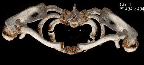 3-ех мерная реконструкция строится по значениям плотности, поэтому видимый на 3-д дефект может быть связан с локальным разряжением костной структуры - остеопенией/порозом. для оценки взаимоотношений и структуры лучше всего подходят КТ-сканы в аксиальной проекции и МПР (мультипланарная реконструкция)во фронтальной проекции.Замечательно, если на сканах будут выведены оба АКС на одном уровне.