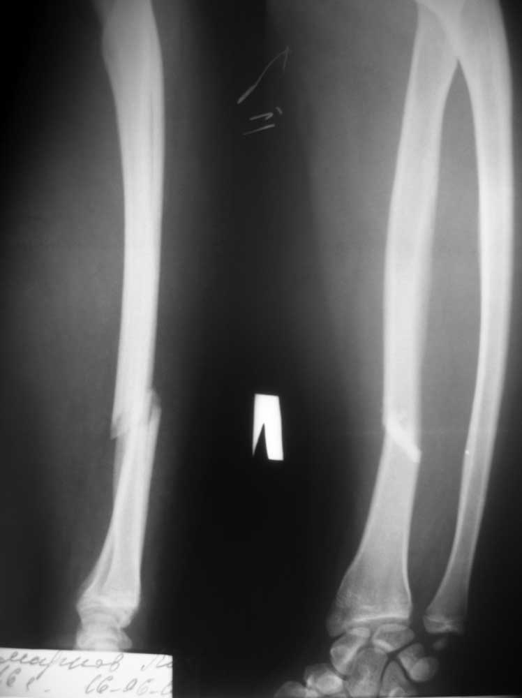 Абсолютное показание к открытой репозиции луча со стабильной фиксацией (пластинка).