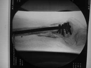 Пациентка 72 лет, сочетанная травма в июле 2011. Одно из повреждений (кроме ЧМТ, грудной клетки, длительной реанимации) перелом дистального бедра.