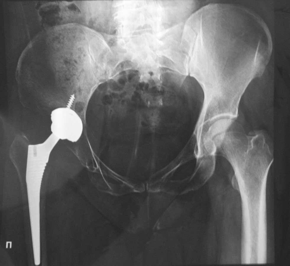 У пациентки имел место диспластичсекий коксартроз- это видно по тому, куда Вы установили чашку эндопротеза- выше истинной вертлужной впадины! По причине того, что деформация у пациентки давняя-длительное время бедро было приведено и ротировано наружу! Соответственно и коленный сустав был адаптирован к имевшей место дисфункции тазобедренного сустава! После решения вопроса с тазобедренным суставом, не произошла обратная адаптация коленного сустава, наоборот усилился вальгус в коленном суставе, имевший место и ранее, до Вашей операции!Судя по снимку, офсет у бедренной ножки стандартный! У данного типа ножек меньшего офсета небывает, есть только больший офсет! Можно конечно было использовать ножку с модульной шейкой, где можно регулировать шеечно-диафизарный угол! Но это уже невозможно-операция выполнена! Нужны снимки всей конечности и возможно коррегирующей остеотомией области коленного сустава можно будет решить возникшую проблему, при отсутствии нестабильности медиальногосвязочного комплекса коленного сустава !