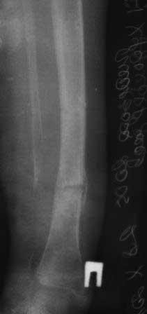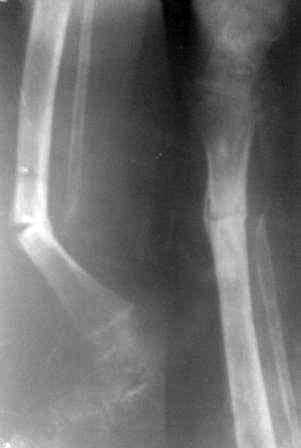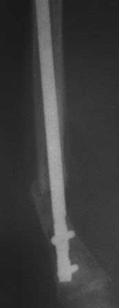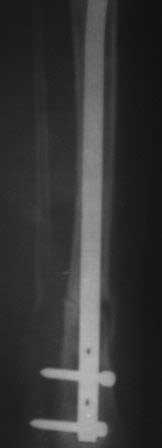 Уважаемые коллеги.Очень прощу помочь в одном сложном деле. Девочка 2005г.р. В середине 2008 г падает с велосипеда с дедом, возможно был перелом н/з костей левой голени, лечение у знахаря-табиба, но ребенок не смог бегать, часто падал, начал хромать. Май 2009г. обратились к нам, установлен д-з « вялоконсолидирующаяся перелом н/з б/берцовой кости, несросшийся перелом м/берцовой кости со смещением по ширине». Мы решили гипсовая повязка и ходьба с нагрузкой, но по категорическому требованию родителей исправить деформацию м/берцовой кости, произвели операцию ( на свою голову )»о/ репозиция и и/м фиксация спицами м/берцовой кости». Теперь началась самая интересная история! Ч-з недели две в обл. п/о раны м/берцовой открылась свищ с кровянистым выделением, гноя не было, на р-грамме лизис концов отломков м/берцовой кости, к-рый начал прогрессировать, консультирована онкологами, цитология, с подозрением направлена в центральные институты, сделана КТ, онкологическое исключили, в августе попали в остеомиелитический центр, где произведена резекция м/б на протяжение 6-7см, все зажило и выписали (снимок-1). 2010г в мае повторно получила травму, наложена гипсовая повязка (снимок-2) и через 1-2 месяца в одном из центральном институте произведена КДО аппаратом Илизарова , который снят ч-з три месяца (снимок-3) и долго ходила на костылях-мать заставила, как начала наступать, появилась деформация, заказали ортез и так ходила, но деформация прогрессировала, Обратилась к нам в апреле 2012г,(снимок-4) произведена постепенная коррекция на аппарате, и замена на БИОС 01.03.12г плечевым гвоздем, ЭОП нет, поэтому осталась несколько антекурвация (снимок-5), ребенок ч-з неделю начала ходить.Повторный осмотр 22.06.12г- деформация усиливается, за три месяца сращение очень слабое.(снимок-6). (Жаль что многие р-снимки не сохранились, мать обещала хотя бы часть найти)!Что теперь делать? Удалить дистальные винты и пробовать исправить на аппарате, или гвоздь убрать , коррекция на аппарате и после рассверливания повторный БИОС? Уважаемые коллеги, какие варианты предлагаете? С уважением Абдурашид.