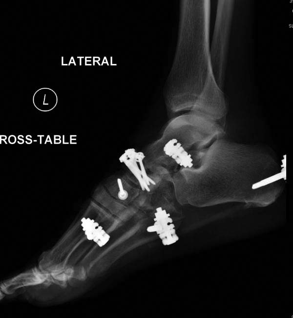 Через три дня оперирована стопа и для нейтрализации сил колонн оставили наружный фиксатор.