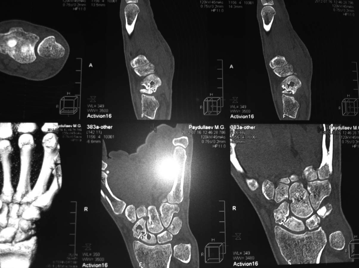 А где на снимках китстозное перерождение головчатой и полулунной костей?
