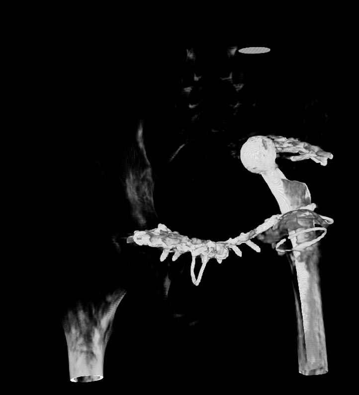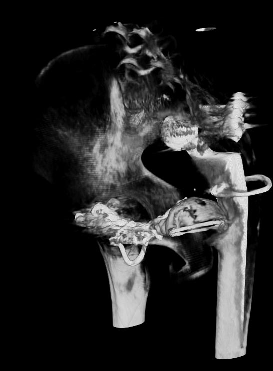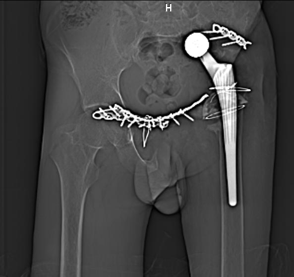 Послеоперациооный период протекал гладко, через 6 месяцев упал, лечился консервативно, далее цепная реакция из проблем: гнойный остеомилит, свищи и лизис костей таза, на бак посеве эхинокок не обнаружен. Бедро не опорно, но больной предвигается на костылях. Картина маслом на рентгене и кт.об артродезировании думали, но диастаз большой, да и на фоне лизиса и остеопороза?????