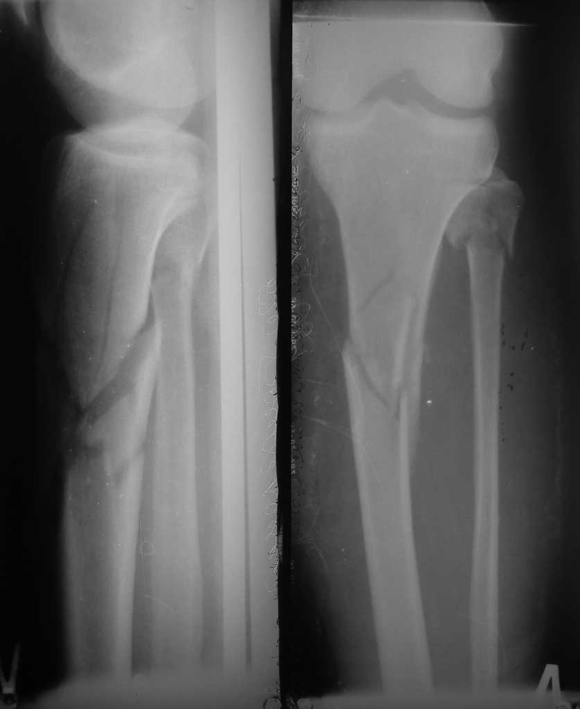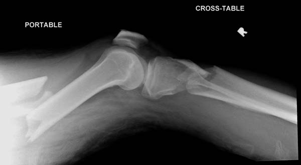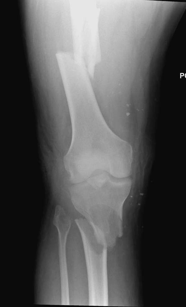 Здесь случай, так называемого floating knee перелома выше и ниже коленного сустава.