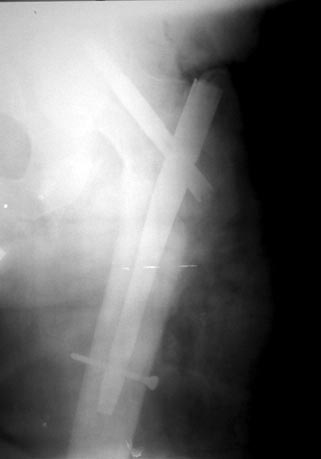 Поверьте на слово - стержень прошел через центр шейки, в обоих плоскостях. Других вариантов не было из-за следов предшествующего вмешательства. Хотели-бы обсудить результат в свете послеоперационного ведения (какую разрешать активность, в какие сроки).