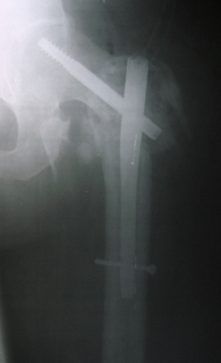 Мы бы убрали пластинку, восстановили бы закрыто шеечно-диафизарный угол (закрытая остеоклазия или межвертельная остеотомия может понадобиться) и сделали остеосинтез каким-то из достуных PFN.