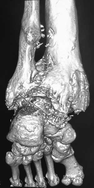 Вопрос, как я писал, в том что это такое- артропатия или артроз. Мне, например, не доводилось видеть нетравматический остеоартроз голеностопного сустава с прогрессирющей варусной деформацией и выраженной кистозной перестройкой. А несращение после резекции голеностопа у больного артропатией видел. В том случае коллеги дважды фиксировали блокирующим гвоздем и пациент ходил, пока держал металл и в настоящий момент планируется 3 синтез.