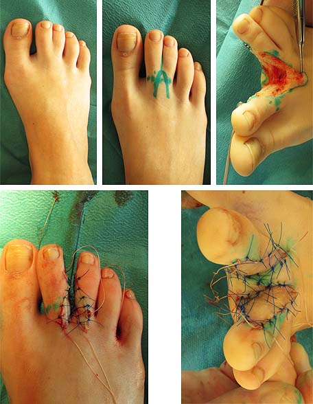 Наберите в любом поисковике foot syndactyly release или foot syndactyly surgery или еще какое-нибудь подобное словосочетание и найдете море информации с картинками, схемами разметки, вариантами с или без свободной пересадки. В рамках коротких ответов на форуме такую информацию в достаточном объеме дать сложно.