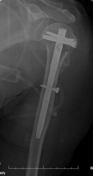 Гвоздь можно оставить убежденным нейлерам. Мы бы применили остеосинтез блокированной пластиной из малоинвазивного переднелатерального чрездельтовидного доступа.