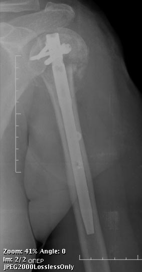 Общему ходу Ваших мыслей трудно противоречить. И представленный Вами случай хорош. Однако по поводу Synthes MultiLoc Nail (а это наверное самый совершенный гвоздь на сегодня для проксимального плеча) это не только лично мое мнение, а мнение большинства преподавателей АО (с кем удалось пообщаться на эту тему), кроме пожалуй Алексея Семенистого и Stefaan Nijs. Алексей в личной беседе несколько недель назад сказал что ему действительно гвоздь больше нравится чем PHILOS. С проф. Stefaan Nijs (эксперт АО по верхней конечности) у нас на эту тему была горячая полемика еще в 2011 году на SECEC-ESSSE в Лионе. Он мне показывал на ноутбуке свои 48 случаев, первыe в Европе при "обкатке" этого гвоздя. Так вот, честное слово, при минимальном смещении вопросов нет - классная штука. А вот при 3-4 фрагментах и значительном смещении, остеосинтез пластиной выглядел бы как минимум не хуже. А в большинстве случаев и лучше. При сложных случаях, нужно все равно выполнять открытую анатомическую репозицию, а потом вводить гвоздь через хрящ. Мне кажется в большинстве случаев особых преимуществ применения интрамедуллярного остеосинтеза при переломах проксимального отдела плеча нет. Мое мнение в том же собрании разделил другой известный эксперт АО Ralph Hertel.