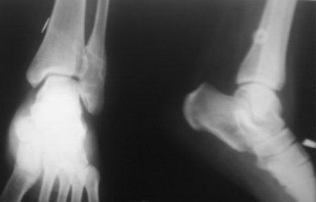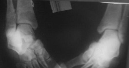 Обратилась К.19 лет. Со слов матери 10-12 лет назад получила перелом лодыжек, лечилась консервативно, ч-з год повторно получила травму г/стопного сустава, лечилась консервативно.