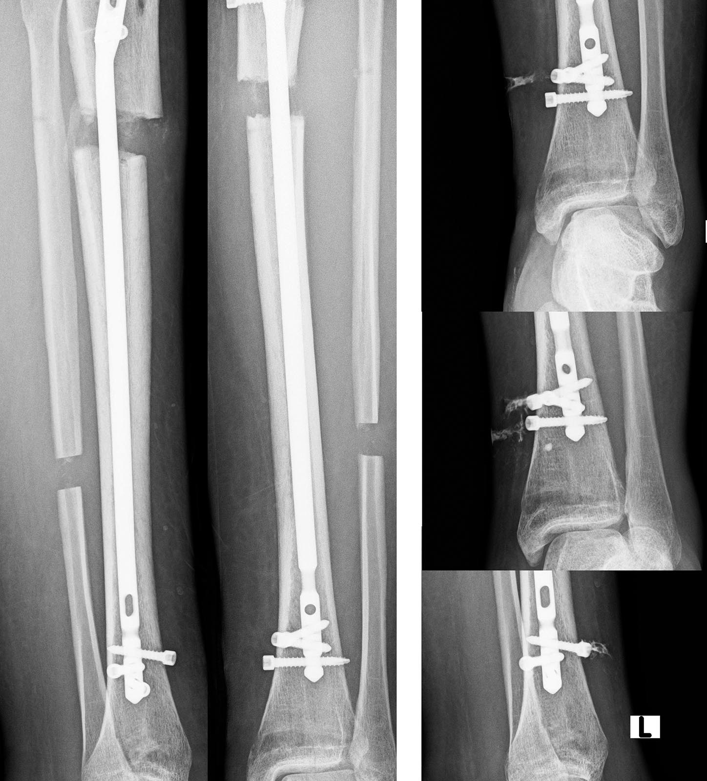 Спасибо! Принято решение удалить штифт и установить цементный спейсер. Вряд ли отважимся на повторный штифт после спейсера, планируем наложить аппарат Илизарова, "попутно исправив недочеты вверху".