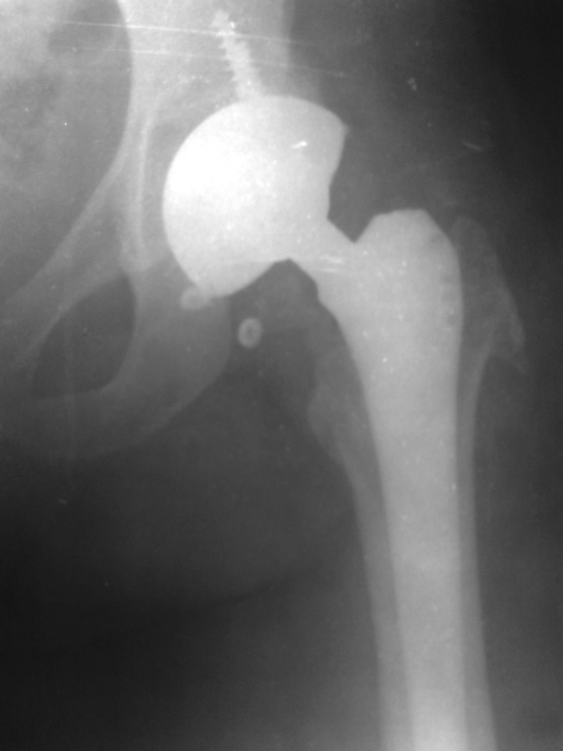 Все получилось из переднего доступа по Лайт-Кегги под эопом конечно смотрели казалось нестабильна,но на самом деле чашка не качалась,остеоинтеграция была только в зоне винтов , остальное рубцова ткань -гладкая и блестящая.После сбивания головки бедро в положении внутренней ротаци сместили вверх и впадина очень хорошо доступна. Установили чашку DePuy Pinnacle с антеверсией 20 гр. Востановить офсет удалось с головкой DePuy +12. Рентген контроль на С-дуге интраоперационно.