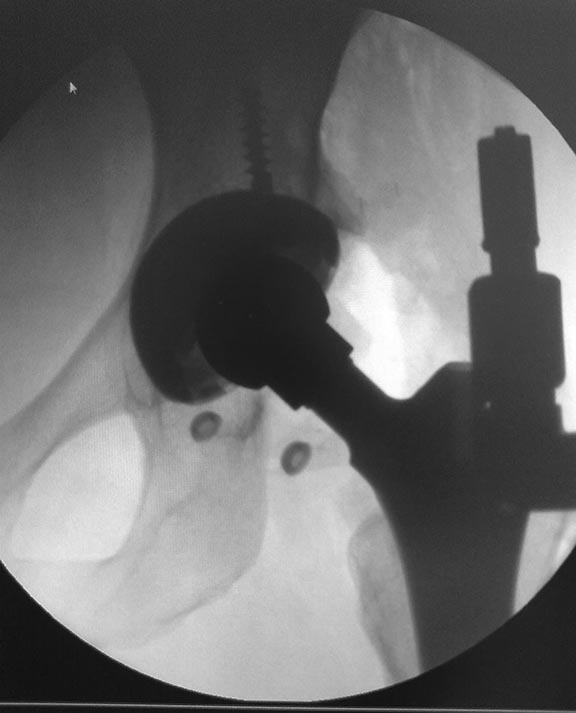 Мне кажется, что угол инклинации вертлужного компонента превышает 45 градусов,но чтобы правильно ценить этот угол, нужно выполнить обзорный снимок таза с тазобедренными суставами и потом измерить угол инклинации чашки. К тому же, чашка при установке латерализовано- мне так кажется-истинная вертлужная впадина находится чуть глубже. Конечно, медиализация чашки увеличит расстояние между бедром и центром вращения чашки (оффсет). http://bone-surgery.ru/view/oslozhneniya_posle_endoprotezirovaniya_tazobedrennogo_sustava_vyvihi_bedra/ по этой ссылке найдете статью, как раз по этой теме.