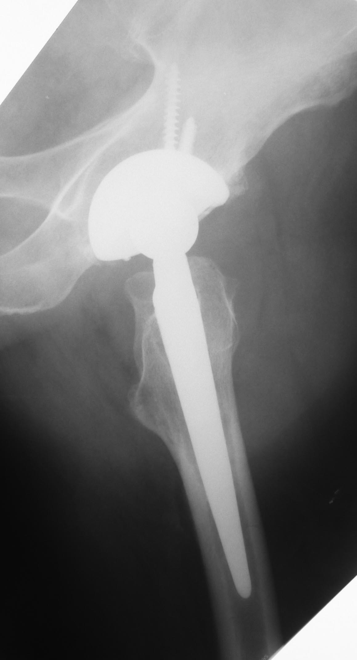 Может содержимым пунктата был дебрис? А вообще-то ревизия и без этого рано или поздно будет нужна - варусная позиция ножки с признаками шунтирования нагрузки.