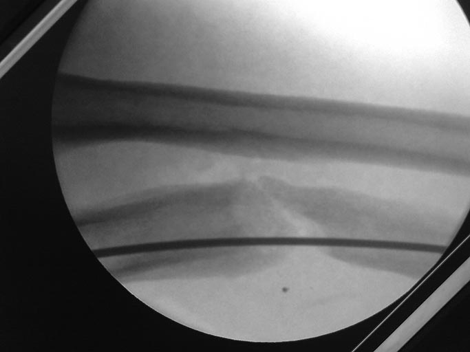 Диастаз определяеться клинически,когда выравниваешь ось предплечья эти две сосульки не соприкасаються.Хотя не буду сильно категоричен.Потом выставлю интрооперационные снимки.Если вас не затруднит хотелось бы зать какой аутотрансплантат предпочитаете в данном случае?