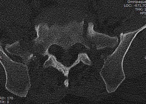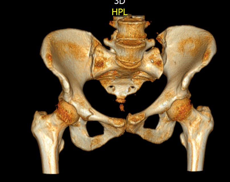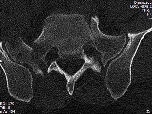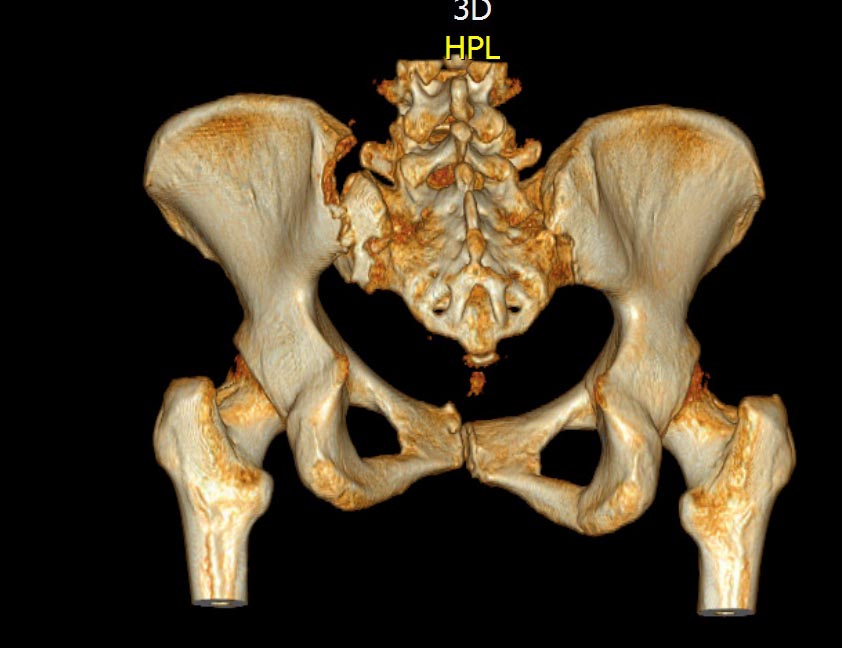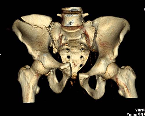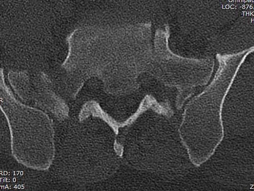 КТ, при детальном рассмотрении виден перелом задних отделов крыла подвздошной кости