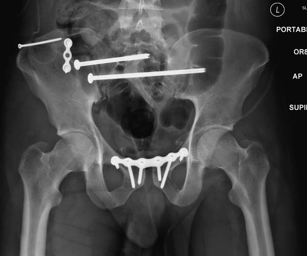 Мы рассматривали вариант открытой репозиции, фиксации пластиной и винтами крыла подвздошной кости. Даже были готовы в случае неудачной попытки закрытой репозиции перейти на открытый синтез. Но поставили перед собой задачу сделать малоинвазивно, удалось.