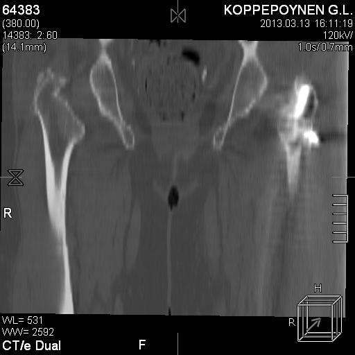 Непонятно, на какой вопрос с помощью КТ хотели получить ответ? IMHO это было ненужное исследование, все проблемы были видны на обычном снимке. А что на второй проекции? Где аксиальная или профиль?