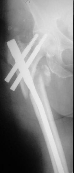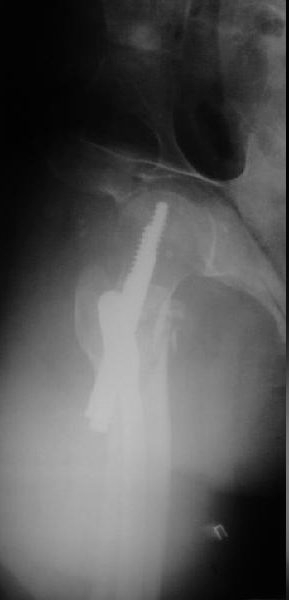 Re: Чрезподвертельный перелом бедра. Остеосинтез стержнем. Перелом металлофиксатора. Дальнейшая тактика?