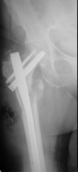 Чрезподвертельный перелом бедра. Остеосинтез стержнем. Перелом металлофиксатора. Дальнейшая тактика? |