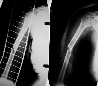 - , то, что пациентка, молодая женщина через 3 мес с банальным переломом плеча, с идеальными показаниями для "золотого стандарта" сгибает в локте до 90 град, да еще и с "портачками" отаппарата - вообще ужас и повод для судебных претензий