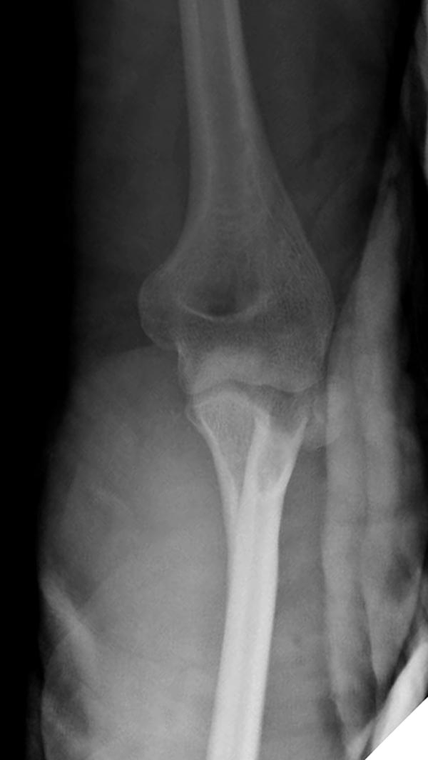 Вместе обычных простых рентгенограм, участились злоупотребления дорогими исследованиями. Хотя многие переломы, даже внутрисуставные, можно увидеть на обычных рентген снимках. Негативный рентген при исследовании локтевого сустава не означает отсутствие перелома. Если имеется “fat pad sign”, характерный симптом для внутрисуставных повреждений, тогда можно ставить диагноз перелом головки луча! Гематома внутрисуставного перелома смещает жировое тело и на боковом снимке проявляется в виде “паруса”.