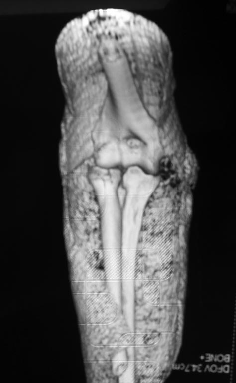 Судя по 3-Д КТ, перелом - много оскольчатый, но без смещения.