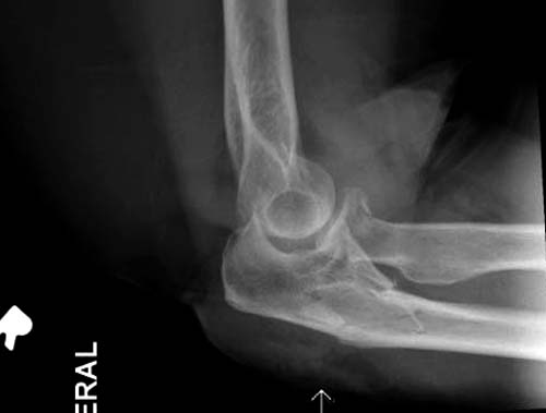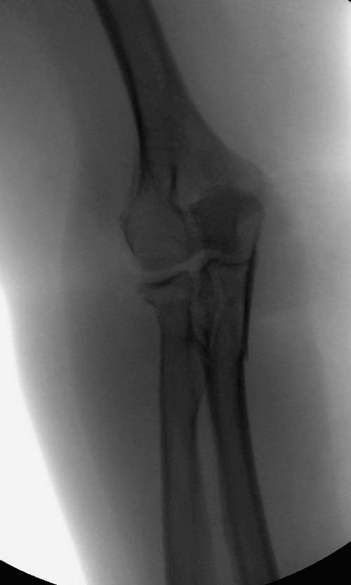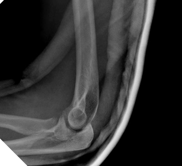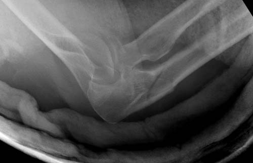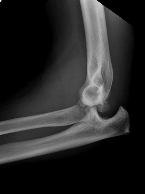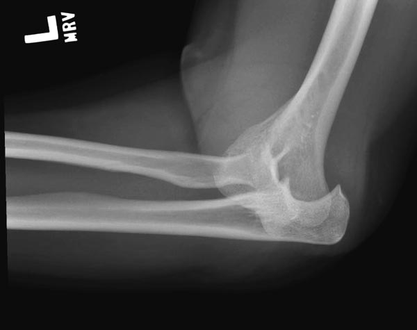 Вместе обычных простых рентгенограм, участились злоупотребления дорогими исследованиями. Хотя многие переломы, даже внутрисуставные, можно увидеть на обычных рентген снимках. Негативный рентген при исследовании локтевого сустава не означает отсутствие перелома. Если имеется “fat pad sign”, характерный симптом для внутрисуставных повреждений, тогда можно ставить диагноз перелом головки луча! Гематома внутрисуставного перелома смещает жировое тело и на боковом снимке проявляется в виде “паруса”.