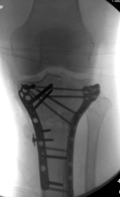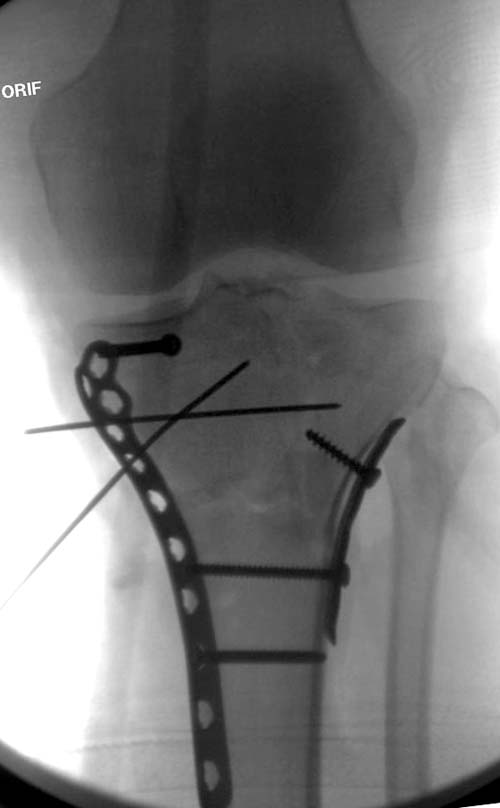 Пластин для медиальной колонны не бывает, и поэтому подойдет любая тонкая пластина. Сегодня отходим от установки для тибиал плато толстых пластин, больше, чем 3.5 мм. Задача удержать, а нагрузка разрешается только после сращения в 3 мес., и поэтому нет смысла устанавливать толстые пластины
